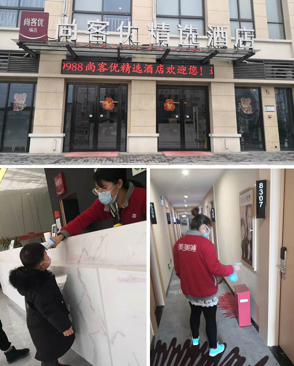 春节本是旅游住宿的旺季,但突如其来的疫情,不仅让酒店陷入了入住率低的困境,更给酒店面对突发情况、保障住客健康安全带来了极大挑战。但尚客优精选江苏南通如东县浅水湾公园店的店长刘鹏说:“疫情当前,酒店人不能退缩,我必须要坚守在岗位上,为滞留在外地的游客、为奋战在抗疫一线的工作者提供安全放心的住宿。”